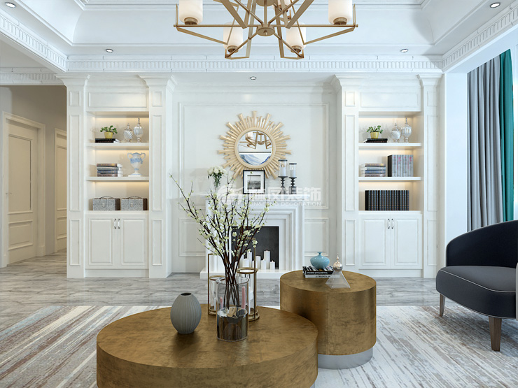 (圖為美式風(fēng)格石膏線(xiàn)墻面裝飾裝修效果圖)