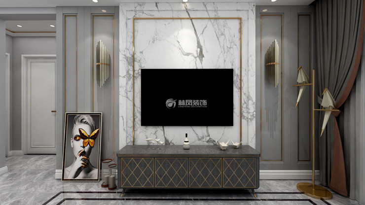 (圖為輕奢風(fēng)格客廳大理石墻面裝飾效果圖)