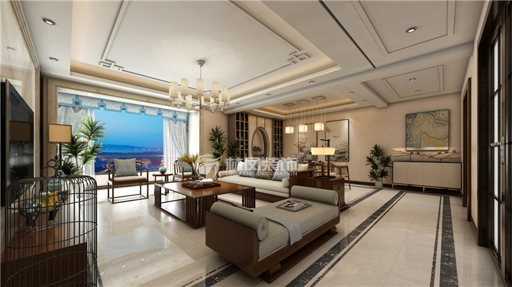 (圖為新中式風格瓷磚鋪貼裝修效果圖)