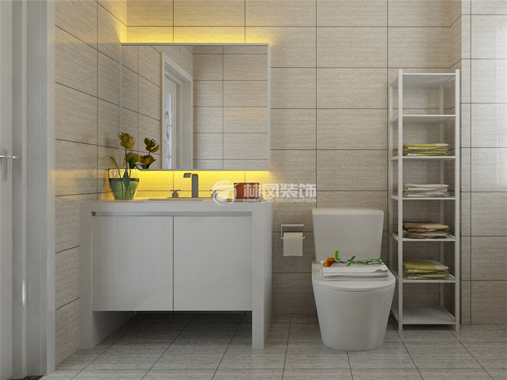 衛(wèi)生間的空間設計不能過于雜亂,本案設計將衛(wèi)生間的儲物功能,視覺效果做到極致,利用暖白色紋理的瓷磚,呼應了整體的暖色調(diào),利用白色的浴室柜,平衡整體的配色效果,十分和業(yè)主心意。