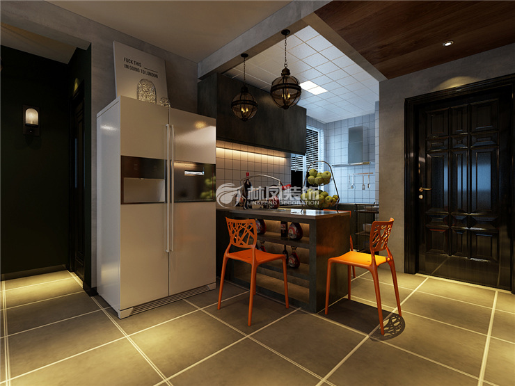 保利達翠提灣79平2居室工業(yè)風林鳳裝飾的廚房干凈素雅的墻磚沒有在繼續(xù)整個空間深邃的感覺。更為在調節(jié)整個空間的氛圍。干凈利索的顏色,搭配起深色的櫥柜達到一種視覺的沖擊。櫥柜的儲物空間強大,足以滿足愛廚房,愛做飯的你。