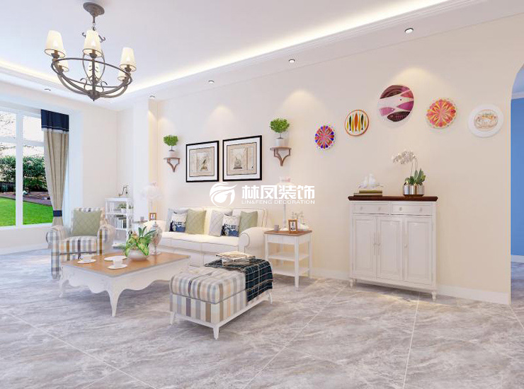 銀河麗灣260平4居室地中海風(fēng)格林鳳裝飾的客廳我們采用深灰色系的瓷磚地面,電視背景墻采用石膏板造型進(jìn)行裝飾比較有立體感,沙發(fā)背景使用掛畫和裝飾盤進(jìn)行裝飾,,棚頂直接用直線邊棚,增加美觀性。