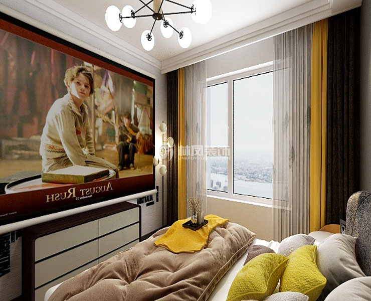 中海城尚城136平2居室現(xiàn)代輕奢風(fēng)格林鳳裝飾的主臥臥室采用了護墻板設(shè)計,大方現(xiàn)代感十足。兒童房以黃色壁紙將房間很好的映襯出來,非常童趣溫馨。