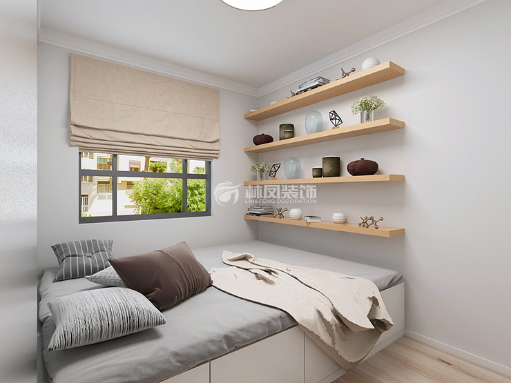 城建萬(wàn)科翡翠書院95平兩室兩廳林鳳裝飾的主臥室舒適的原木色家具給人安逸的體驗(yàn)感,墻面淡淡的灰色讓整體空間的立體感更強(qiáng),藍(lán)色的布藝搭配,讓屋內(nèi)有了海洋的新鮮感。