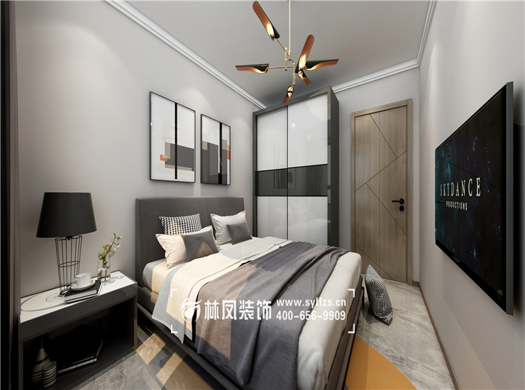 碧桂園大成印象119平三室兩廳北歐風(fēng)格林鳳裝飾的臥室溫馨舒適的空間臥室,軟包布藝床,現(xiàn)代化的休閑垂釣燈, 暖色的乳膠漆墻面,渾然一體瞬間把空間調(diào)控起來。