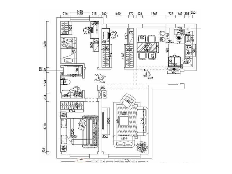 三室兩廳一廚兩衛(wèi),高層整體采用美式風(fēng)格,色調(diào)以深色為主,體現(xiàn)美式的居家感和溫馨感。