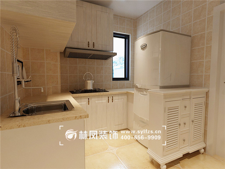 廚房要寬敞明亮,配以淺色的廚柜;有深色墻磚做為襯托,整個(gè)空間備感溫馨與干凈。