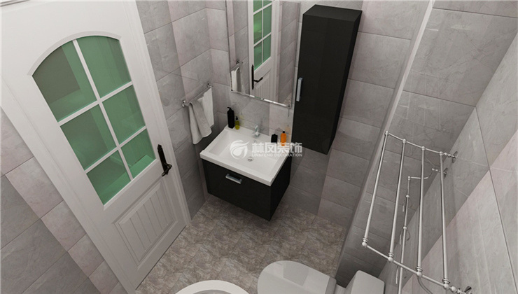 衛(wèi)生間以灰白為主,白色帶給人干凈整潔的感覺,而灰色瓷彌補了大面積白色過亮的缺點,又起到延伸空間的效果。