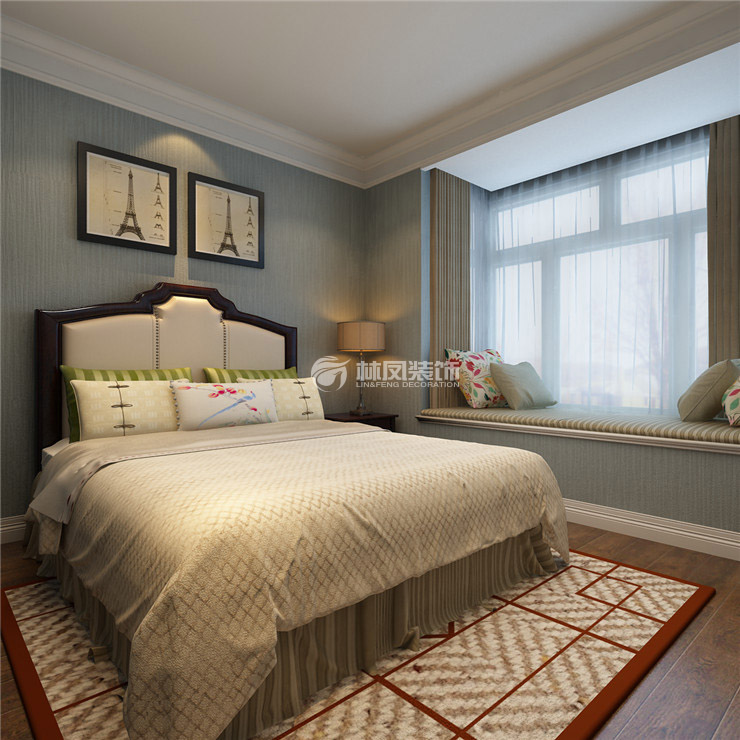 三室兩廳一廚兩衛(wèi),高層整體采用美式風(fēng)格,色調(diào)以深色為主,體現(xiàn)美式的居家感和溫馨感。