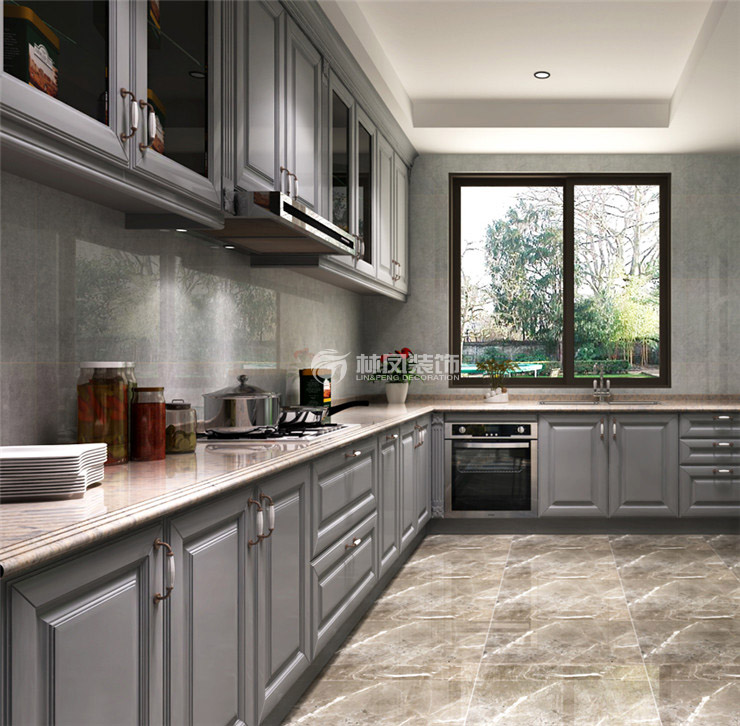 廚房壁磚偏暖色的顏色,地磚與客廳餐廳的磚的材料用一樣的,讓這個(gè)空間相互呼應(yīng),廚房采用L型櫥柜豐富的利用了整個(gè)空間,采用的推拉門(mén),用推拉門(mén)讓整個(gè)空間顯得更寬敞明亮,同時(shí)還防止了油煙的問(wèn)題。