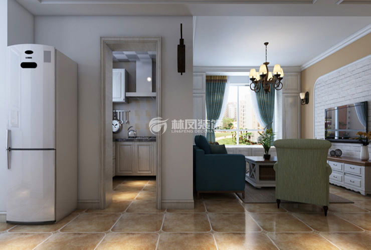 三室兩廳一廚兩衛(wèi),高層整體采用美式風格,色調以深色為主,體現美式的居家感和溫馨感。