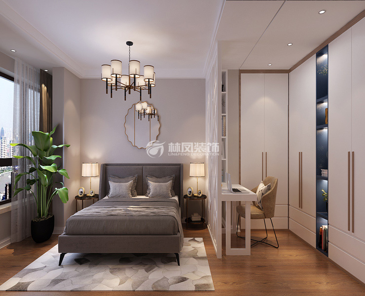 主臥室的空間原始很大,為了增加一些儲物空間,特此把墻體全部拆除,進(jìn)行重新分割,做個一組更衣室,還有一個書房空間,它是通透的,兩個空間,互相襯托,顯得空間更大!有明亮!