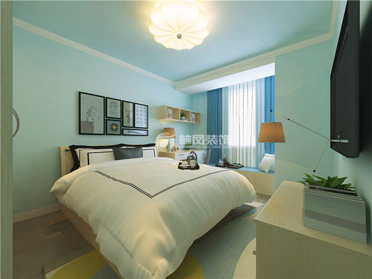 主臥室利用空調(diào)間的飄窗區(qū)域,規(guī)劃出地臺柜體與書桌相結(jié)合的定制家具,增加空間的功能性。臥室的朝向決定整體色調(diào)可以選用偏冷的色調(diào),配以原木質(zhì)感的家具產(chǎn)品,設(shè)計成舒適的日式小清新風(fēng)格,更有家的感覺。
