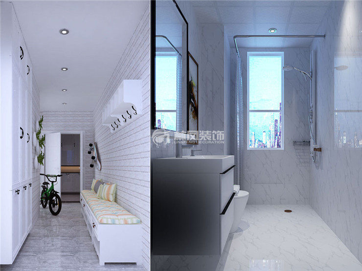 簡(jiǎn)單實(shí)用美觀,主衛(wèi)生間運(yùn)用黑白色系皮紋磚墻地磚的鋪設(shè)使空間不會(huì)顯得那么傳統(tǒng),多了一些質(zhì)感。次衛(wèi)生間,做的比較簡(jiǎn)單,運(yùn)用淺色的花紋墻地磚,空間雖小但是也能體現(xiàn)精致。
