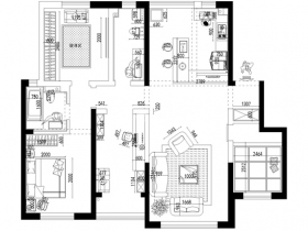 優(yōu)點(diǎn):本案例戶型有獨(dú)立玄關(guān),客廳與餐廳廚房同寬,墻體可拆改性很大。