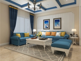 本案為地中海風(fēng)格,在空間的設(shè)計(jì)里,讓人有種來到了海岸邊,蔚藍(lán)色的大海、金色的陽光、還有白色的沙灘。讓人有種自由的感覺。