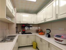 本案是歐式中的一種比較清新浪漫的地中海風格,石膏板假梁,抽縫的元素造型,讓大地黃的底色壁紙和海藍色的實木家居之間的搭配,來營造溫馨的爛漫的地中海情懷。