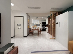 本案以簡潔明快的設(shè)計風(fēng)格 打造了一個對比強烈,質(zhì)感鮮明的現(xiàn)代居住空間,主要以墨綠色為主色調(diào),在地面,廚房等位置大量使用,優(yōu)雅且時尚。吊頂?shù)脑O(shè)計更是以簡單且有創(chuàng)意的造型處理,既滿足了功能使用,又不失簡潔大氣。增添了空間的層次感,更使燈光多元化。