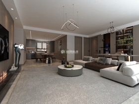 設(shè)計(jì)理念: 本案采用現(xiàn)代風(fēng)格,戶型是客廳大開間設(shè)計(jì),沙發(fā)后側(cè)設(shè)計(jì)了開放式書房,客廳跟書房都是開闊的空間感非常強(qiáng),顯得空間很大。