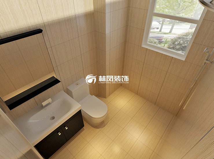 衛(wèi)生間內(nèi)部結(jié)構(gòu)比較合理,我們利用暖色系版瓷磚來裝飾衛(wèi)生間空間,使衛(wèi)生間空間上不會感 覺到狹小反而錯落有致。