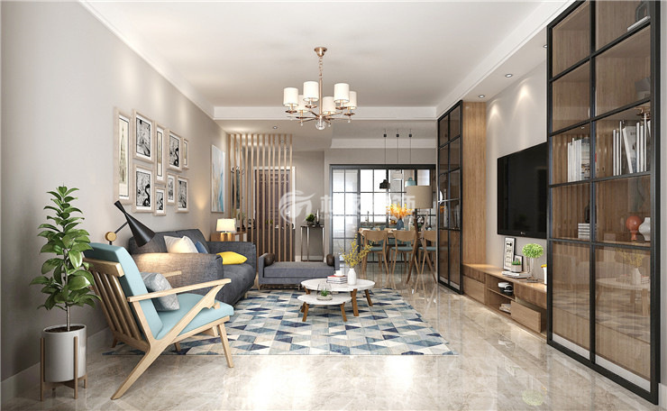 客廳的功能除了會客更是一家人聚集親密的地方,背景墻摒棄了傳統(tǒng)的造型等華而不實的材質(zhì),采用現(xiàn)代感極強(qiáng)的玻璃移門書柜,體現(xiàn)出主人的品味,更能有效的陪著孩子學(xué)習(xí)、娛樂。仿理石質(zhì)感的地磚搭配木質(zhì)隔斷及柜體,給人舒適愜意的同時又不失時尚。