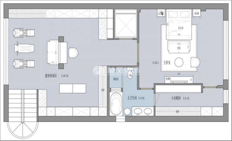 主臥室用個(gè)性相向的高級(jí)灰與灰藍(lán)色的石膏線造型組合,碰撞中帶來(lái)超強(qiáng)的吸引力,使空間的氛圍優(yōu)雅中卻不失靈動(dòng)。