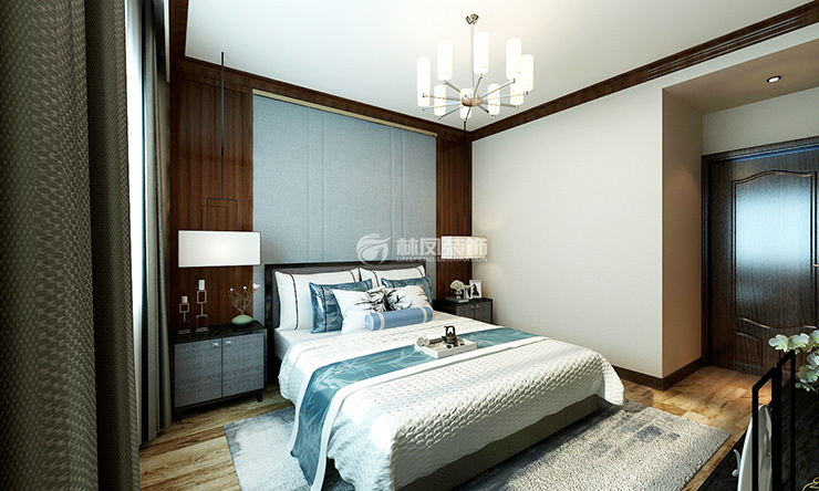 方大御府270平5居室新中式風(fēng)格林鳳裝飾的臥室是整個屋內(nèi)帶有隱私的空間。臥室都選擇了用屏風(fēng)等等的有代表性的元素來表示。顯得整個屋內(nèi)十分高端,但并不失去休閑令人放松的感覺。