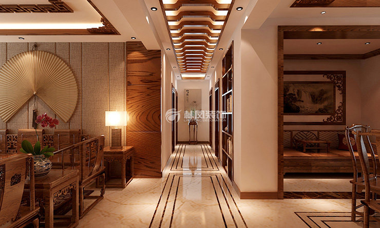 方大御府270平5居室新中式風(fēng)格林鳳裝飾的過廊