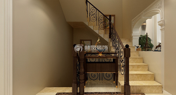 新希望紫檀山400平別墅新古典風格林鳳裝飾的過廊