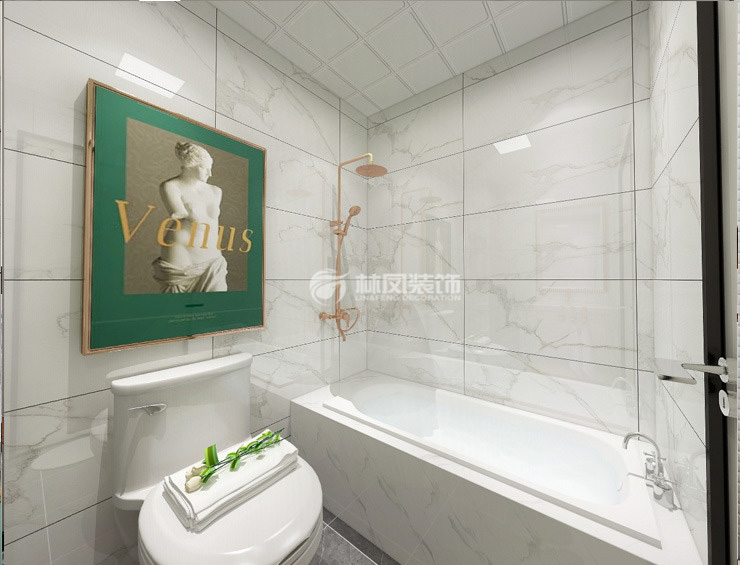 中海和平之門89平2居室現(xiàn)代混搭風(fēng)格林鳳裝飾的衛(wèi)生間延續(xù)了一貫的黑白灰風(fēng)格,冰冷的理石配以金屬裝飾條讓衛(wèi)浴空間看起來更加的整潔,干凈,樣條簡單的小花磚靈動了整個衛(wèi)生間,讓沐浴泡澡變得生動。