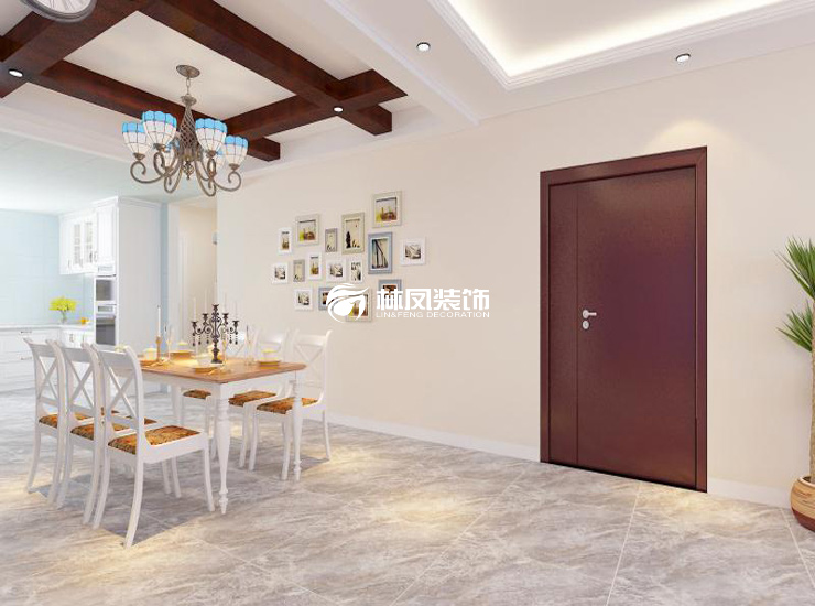 銀河麗灣260平4居室地中海風(fēng)格林鳳裝飾的餐廳空間較大,把餐桌放置中間這樣既有美觀性還可以增加通過的空間。在墻面采用壁龕,大大增加了儲(chǔ)納空間。