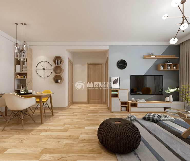 遠洋大河宸章89m2兩室兩廳北歐風格林鳳裝飾的客廳以原木為主,北歐元素為輔,家具材質(zhì)采用現(xiàn)代家具,增加家里現(xiàn)代的感覺,棚面與墻面都做了比較簡單的造型,墻面采用了新穎藍灰色色彩拼塊護壁紙,讓整體空間顯得不那么發(fā)黃,讓整個客廳空間大氣穩(wěn)重,又略顯時尚。