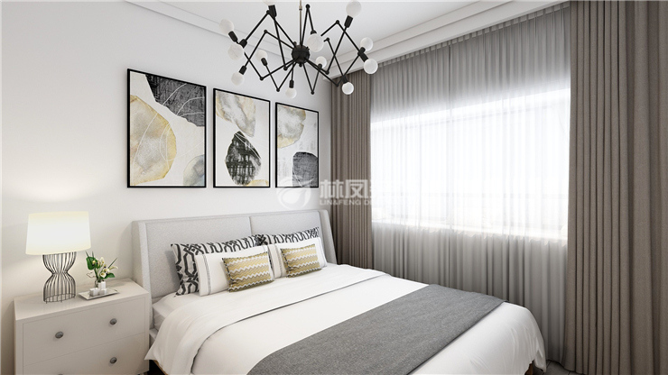 金輝優(yōu)步湖畔115平四室兩廳現(xiàn)代簡(jiǎn)約風(fēng)格林鳳裝飾的臥室是休息的地方業(yè)主不喜歡太鮮艷的顏色,喜歡質(zhì)樸的感覺,臥室棚面采用了石膏線造型地面選擇了鋪貼灰色地板,臥室空間以灰色白色為主,墻上畫龍點(diǎn)睛的掛畫與臥室的床和衣柜顏的色彩都以灰白為主,風(fēng)格更加的統(tǒng)一。