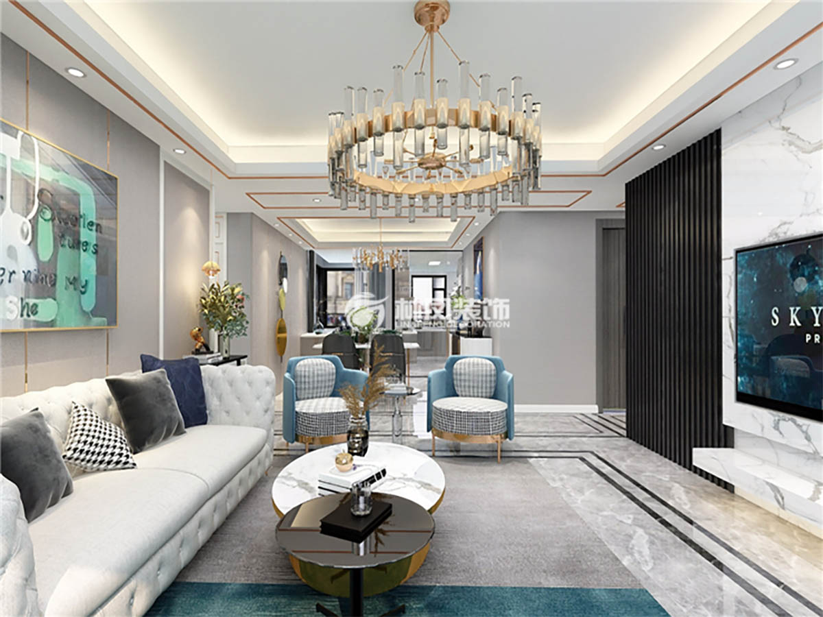 碧桂園名門150平四室兩廳兩衛(wèi)輕奢風(fēng)格林鳳裝飾的客廳是連接著內(nèi)與外、客與主溝通的主要場所,利用率非常高,所以客廳所占的比例較大,沙發(fā)背景墻是采用了大理石材質(zhì)做的背景,電視柜與墻為一整體,通用大理石鋪貼,米白色的布藝沙發(fā)與整個(gè)空間的顏色搭配起來,給人特別舒服的質(zhì)感。吊頂采用簡單的直線邊棚搭配金屬線條使整個(gè)空間輕奢感十足。