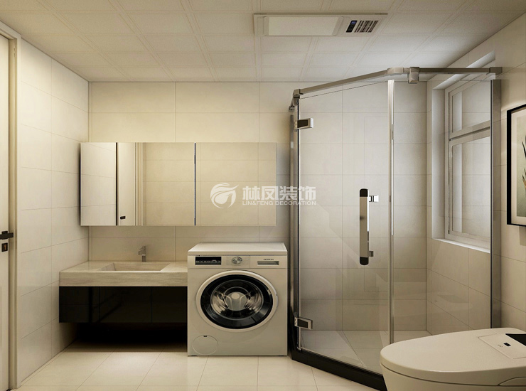 華潤萬象城139平四室兩廳港式輕奢風格林鳳裝飾的衛(wèi)生間墻面采用酷酷的黑灰色理石,這里的洗面臺也是加長的,這種功能與畫面感并存的空間,彰顯主人的大氣又不失穩(wěn)重的品位。