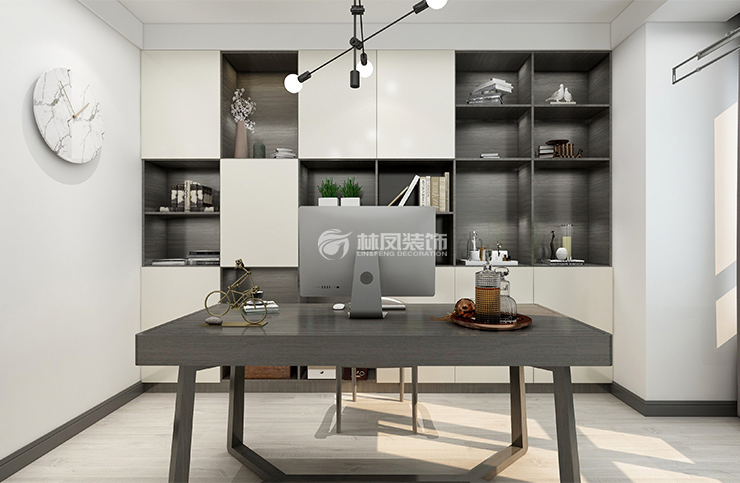 綠城全運(yùn)村玉蘭花園128平三室兩廳現(xiàn)代簡約風(fēng)格林鳳裝飾的書房