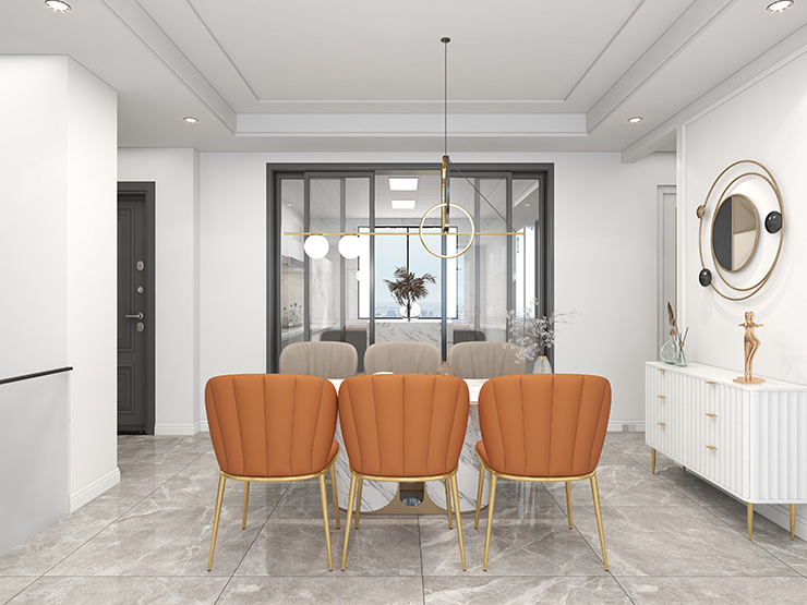 白色理石餐桌搭配上金屬線條的餐椅,純白色的餐邊柜讓主人耳目一新,優(yōu)雅浪漫,更加渲染了就餐的浪漫。