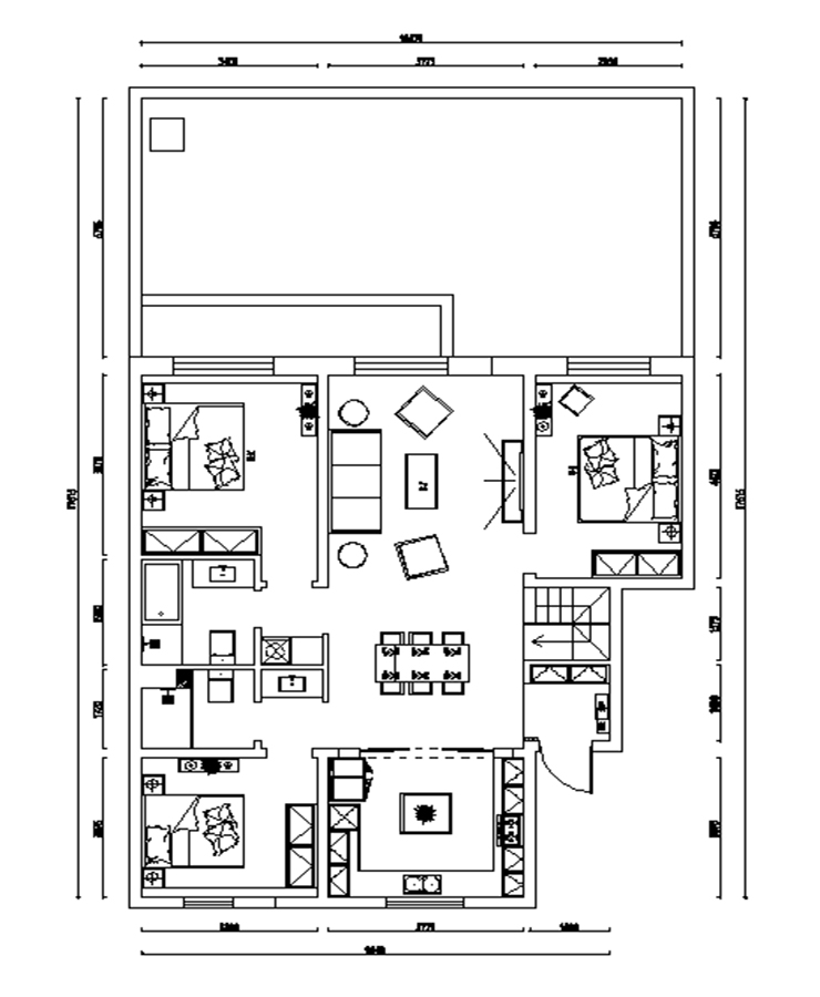 三室兩廳一廚兩衛(wèi),高層整體采用美式風(fēng)格,色調(diào)以深色為主,體現(xiàn)美式的居家感和溫馨感。
