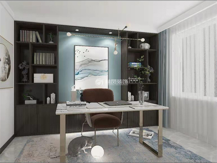 三室兩廳一廚兩衛(wèi),高層整體采用美式風格,色調以深色為主,體現(xiàn)美式的居家感和溫馨感。