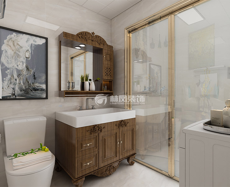 中式的衛(wèi)生間一直保持的古雅的氣息, 采用的墻磚顏色也讓整體感覺(jué)都變得明亮,也保持了整體的圍合感和藝術(shù)感。