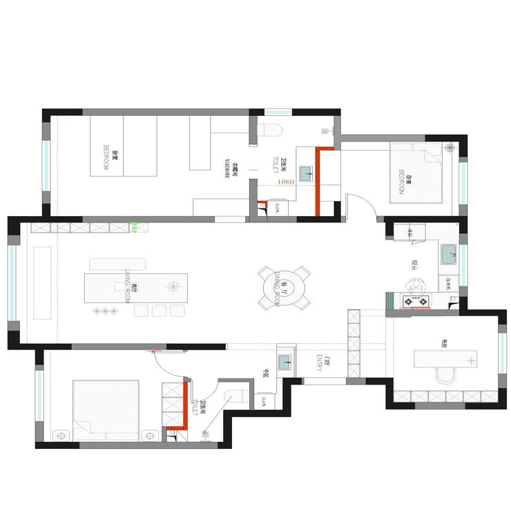本案業(yè)主為年輕時尚小兩口,所以我們考慮到未來想要給未來寶寶一個溫馨舒適的一個房間,所以本案整體采用現(xiàn)代風格的手法,運用顏色,來打造整體空間的設(shè)計感及時尚感