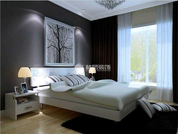 4.主臥室以簡單實用為主,以白色為主灰色點綴,臥室偏冷色系多一點,合理的布局加上高傲的冷色,讓女主人更有女王范。