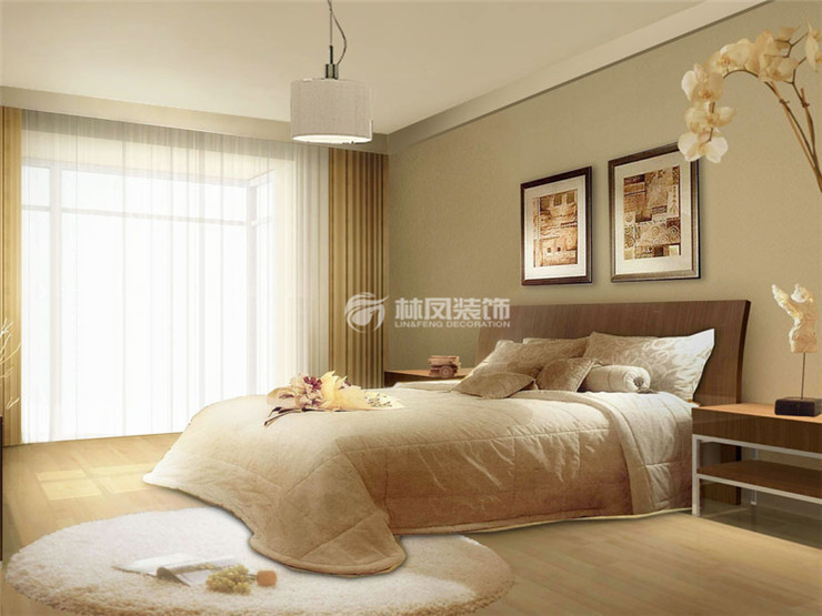 臥室主體背景墻主要以淺色的壁紙為主,襯托白色的家具,看起來溫馨明亮。