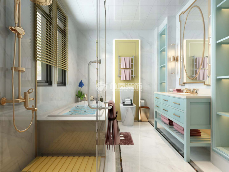 衛(wèi)生間整體裝修相對簡單,簡潔中透著細(xì)膩。鏤空花格板就是其中的一個亮點。整體搭配,實用大方、安全方便、易于清潔、美觀簡潔,使用透明浴屏,使空間在視覺上擴(kuò)大。