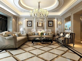 星月國際城300平4居室為歐式風格裝修,通過一系列歐式元素的點綴,打造出了富麗堂皇,端莊典雅的家庭氣氛。